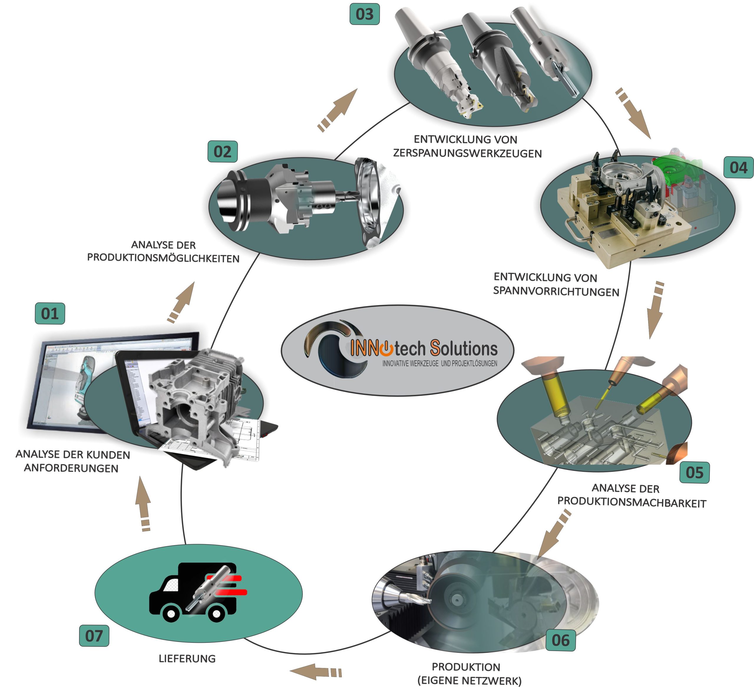 • Gezielte Ausführungen von Sonder- und Standard-Zerspanungswerkzeugen für den Fertigungsprozess